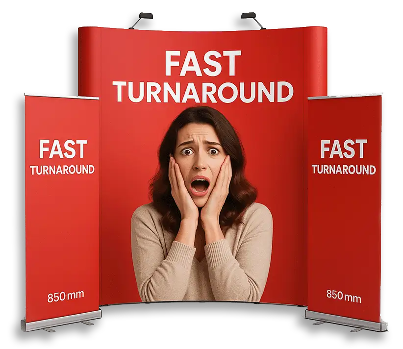 From pop-up stands and roller banners to fabric display systems, shell-scheme graphics, window vinyls, flags and promotional counters, every product is printed in-house to ensure fast turnaround times and consistent colour accuracy. Because everything is produced by our own specialist team, you benefit from full control, reliable lead times and competitive pricing throughout the year.